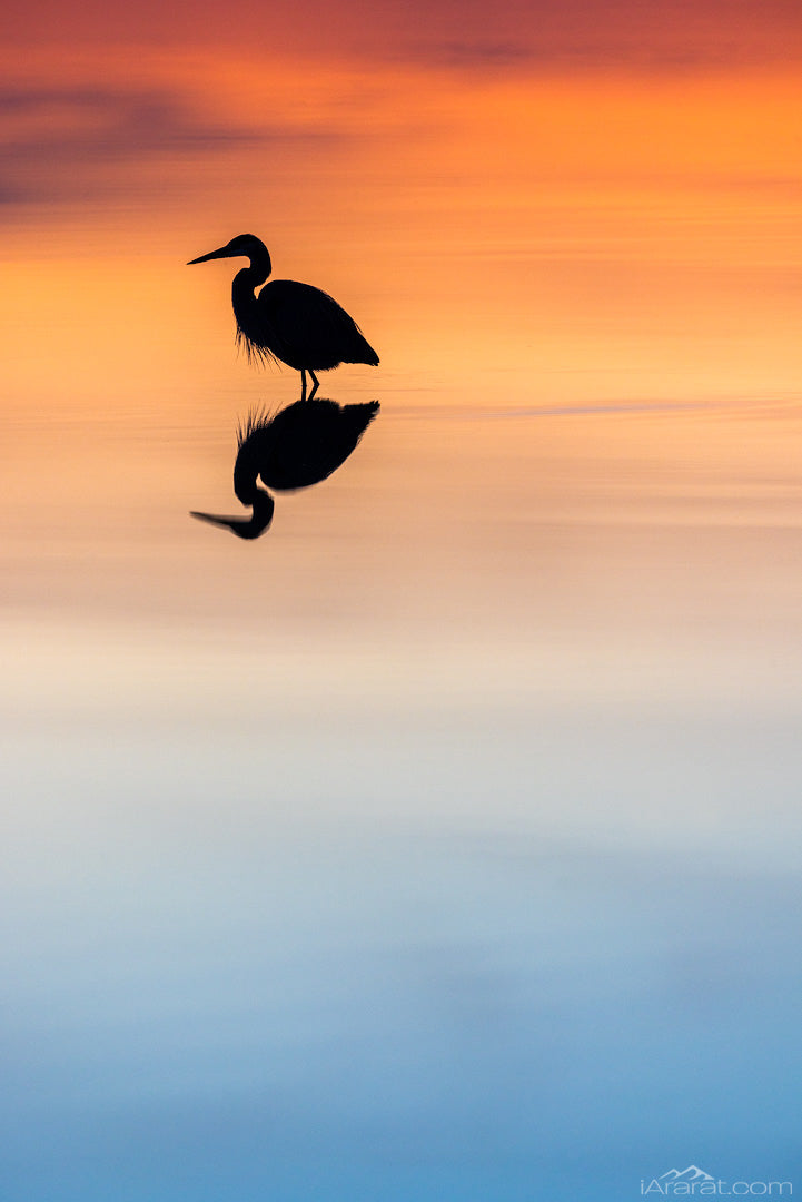 004 "Great Blue Heron in the Rainbow Water" 12"x18"