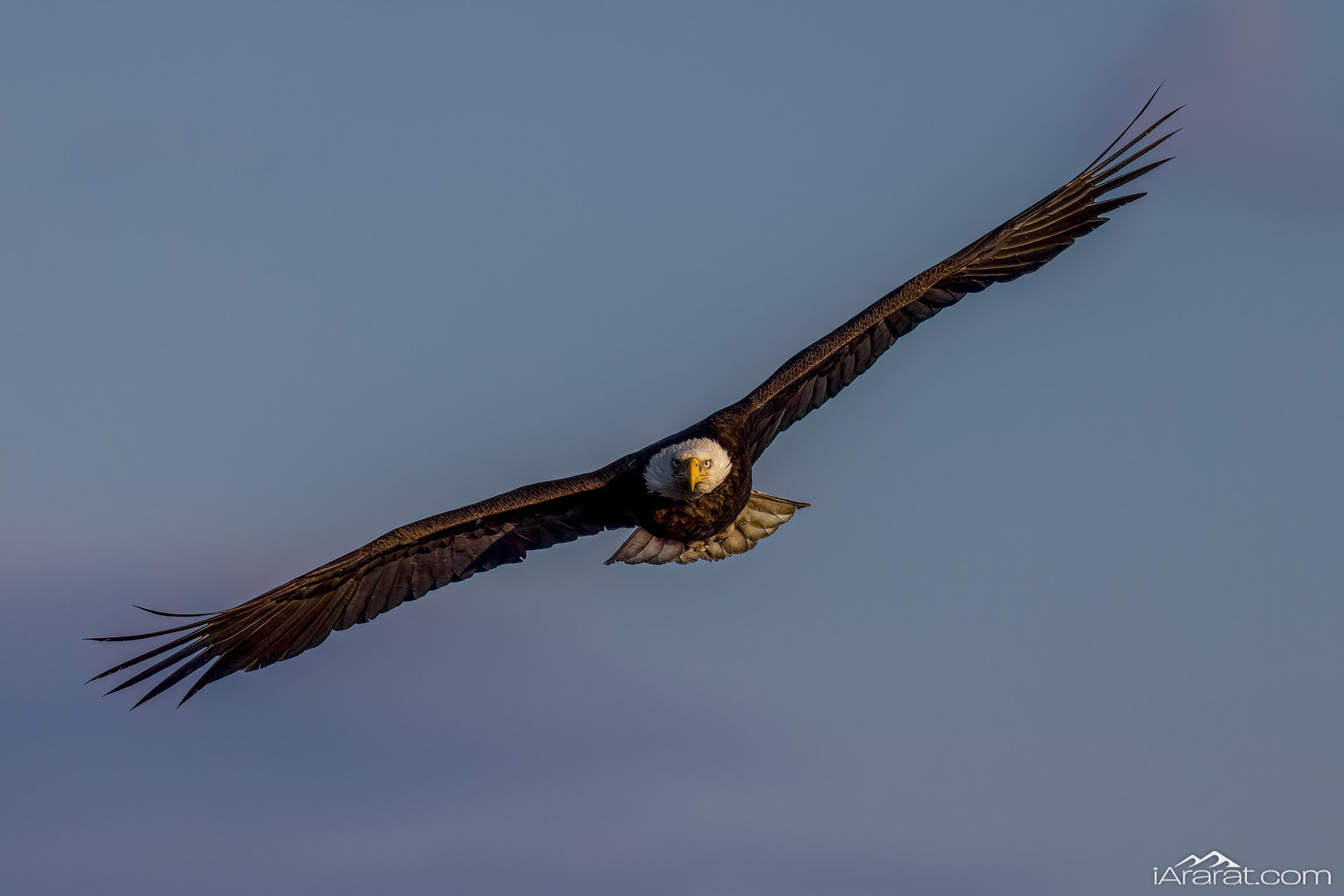 In a moment of perfect alignment, the eagle meets the lens head-on — wings wide, gaze locked. A fleeting encounter between predator and observer.